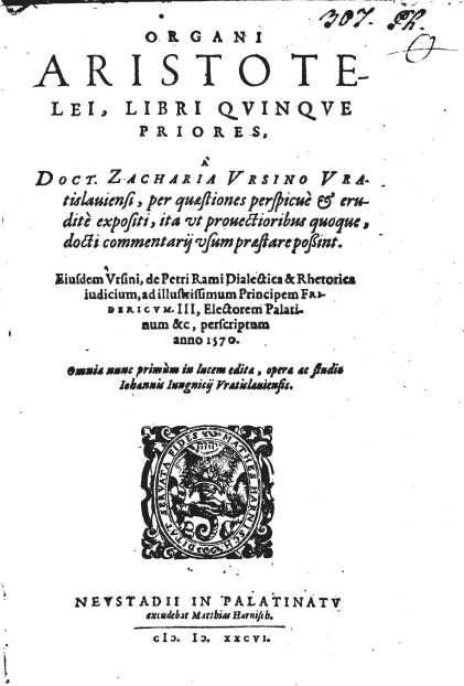 *The following is my translation of pages 8-11 of Luca Baschera’s Tugend und Rechtfertigung: Peter Martyr Vermiglis Kommentar zur Nikomachischen Ethik im Spannungsfeld von Philosophie und Theologie, (Theologischer Verlag Zurich: 2007). Here Baschera summarizes and offers commentary on Johann Jungnitz’s preface to Ursinus’s version of Aristotle’s Organon: